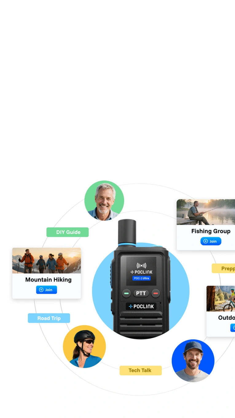 End-to-end security. Traditional radios only have public channels. POC-1 Ultra provides private groups powered by AES-256 encryption. Every call is totally private between you and your team.